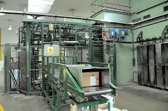 Panorámica del sistema de transporte y el bunker de irradiación de la Unidad Radiante 2.